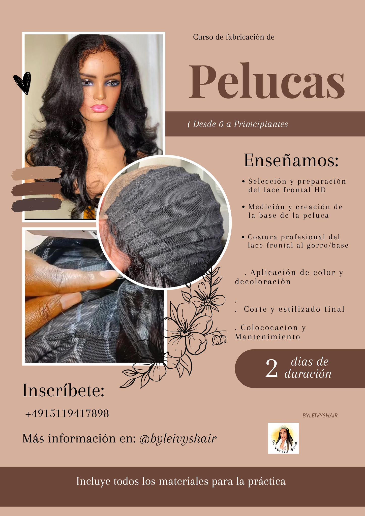 Este curso está diseñado para que, al finalizar, puedas ofrecer pelucas de alta calidad, hechas a medida y listas para usar, diferenciándote en el mercado y generando ingresos desde tu primer trabajo.